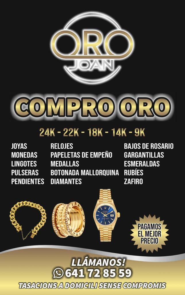 OroJoan es una empresa dedicada a la compra y venta de metales preciosos ubicada en Palma, España. Nos especializamos en la adquisición de oro, plata, diamantes y relojes de alta gama. Nuestro objetivo es proporcionar un servicio profesional y transparente, garantizando que nuestros clientes reciban el valor justo por sus bienes. Contamos con un equipo de expertos altamente capacitados y tecnología de vanguardia para asegurar que todas nuestras transacciones sean justas y precisas. En OroJoan, la satisfacción del cliente es nuestra prioridad, y trabajamos incansablemente para ofrecer una experiencia excepcional y de confianza en cada interacción.